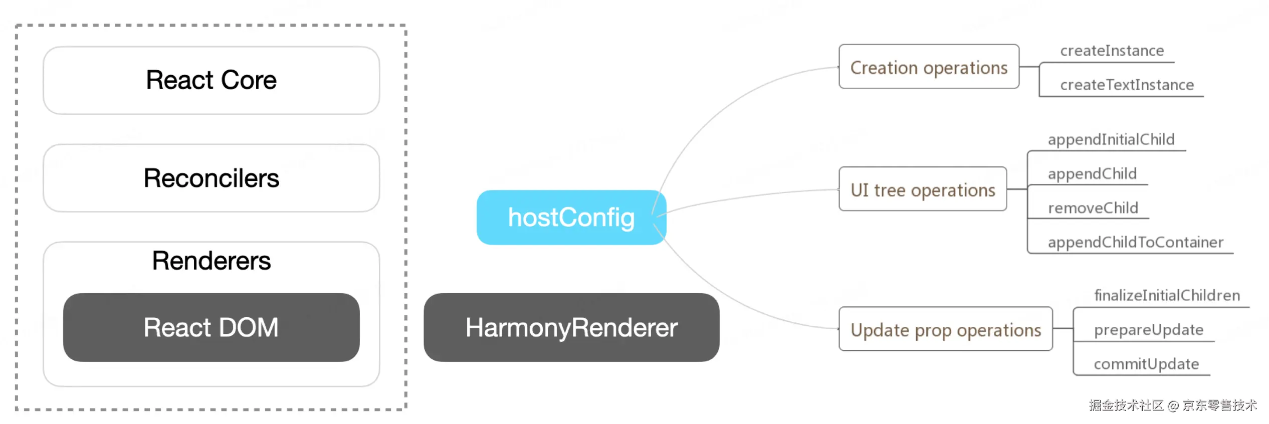 要实现 Taro 的 Renderer,我们需要实现 React Reconciler 所需的 hostConfig 接口。这个接口定义了一系列方法,用于创建、更新和管理渲染目标平台的元素。以下是一些关键的 hostConfig 方法: