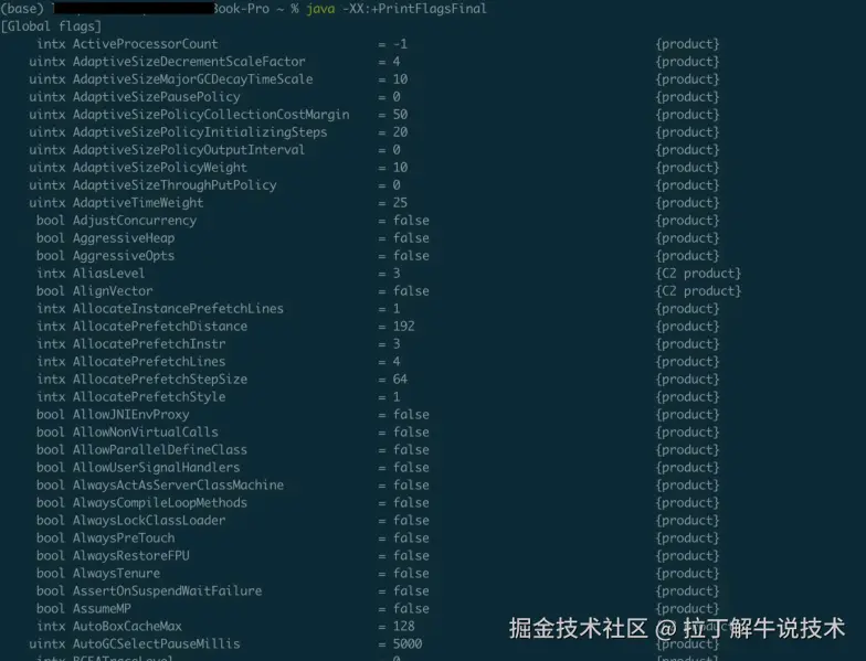 (base) aa@aaMacBook-Pro ~ % java -XX