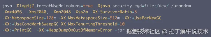首先,大家看一下这份jar包启动参数命令集,先不用想具体含义,看看参数都有哪些特点。