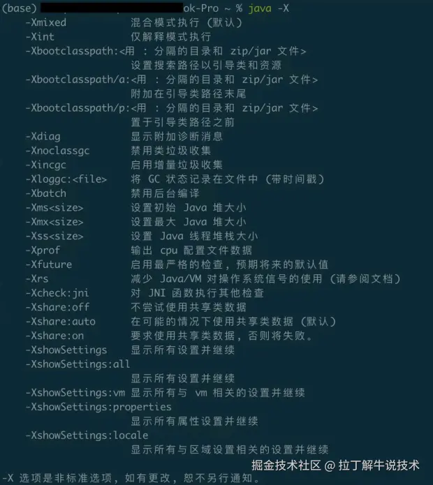 之前是java -X查看非标准参数,现在是 java -XX?