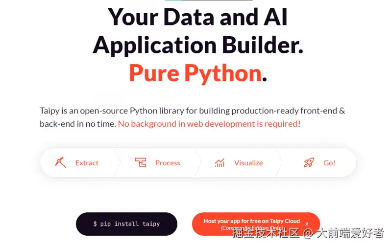 Taipy 是一个开源的 Python 库,用于创建GUI界面和改进数据流管理。它提供了易用的端到端应用开发工具,特别适合需要处理大规模数据的场景。