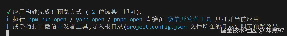 这时候提示使用命令行竟然可以直接在 微信开发者工具 里面打开应用: