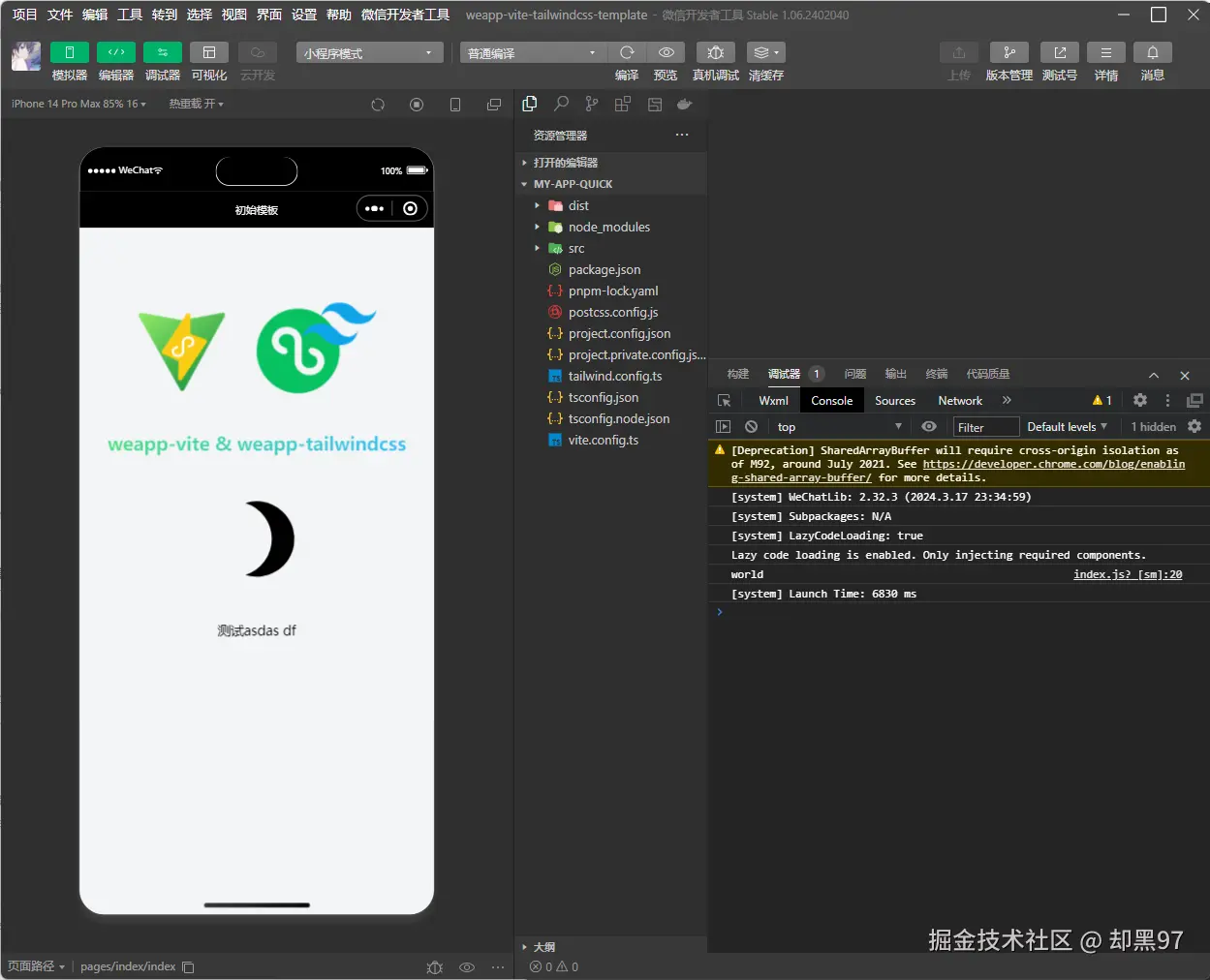 总结: weapp-vite项目是为了优化原生小程序的开发体验存在的,对于不熟悉React、Vue并且喜欢原生小程序语法的开发者是一件很值得去试一试的框架,毕竟原生的写法要自己配置一堆乱七八糟的东西,这个框架帮你做了很多,可以说大型项目也可以做到开箱即用的。但是如果你想要跨平台编译,你更适合Trao这种跨平台框架,不过跨平台的框架因为要兼容的东西和复杂度太高,多少也是有很多问题需要自己处理,对于一个成熟的前端开发可能需要自己解决或者去对应的issue里面寻找答案。