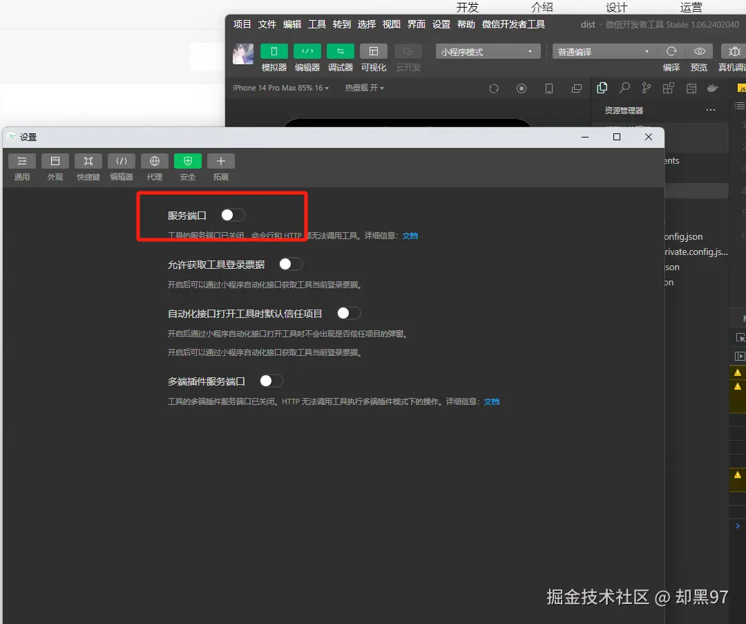 注意:要在小程序的设置里面打开服务端口才可以快速打开。