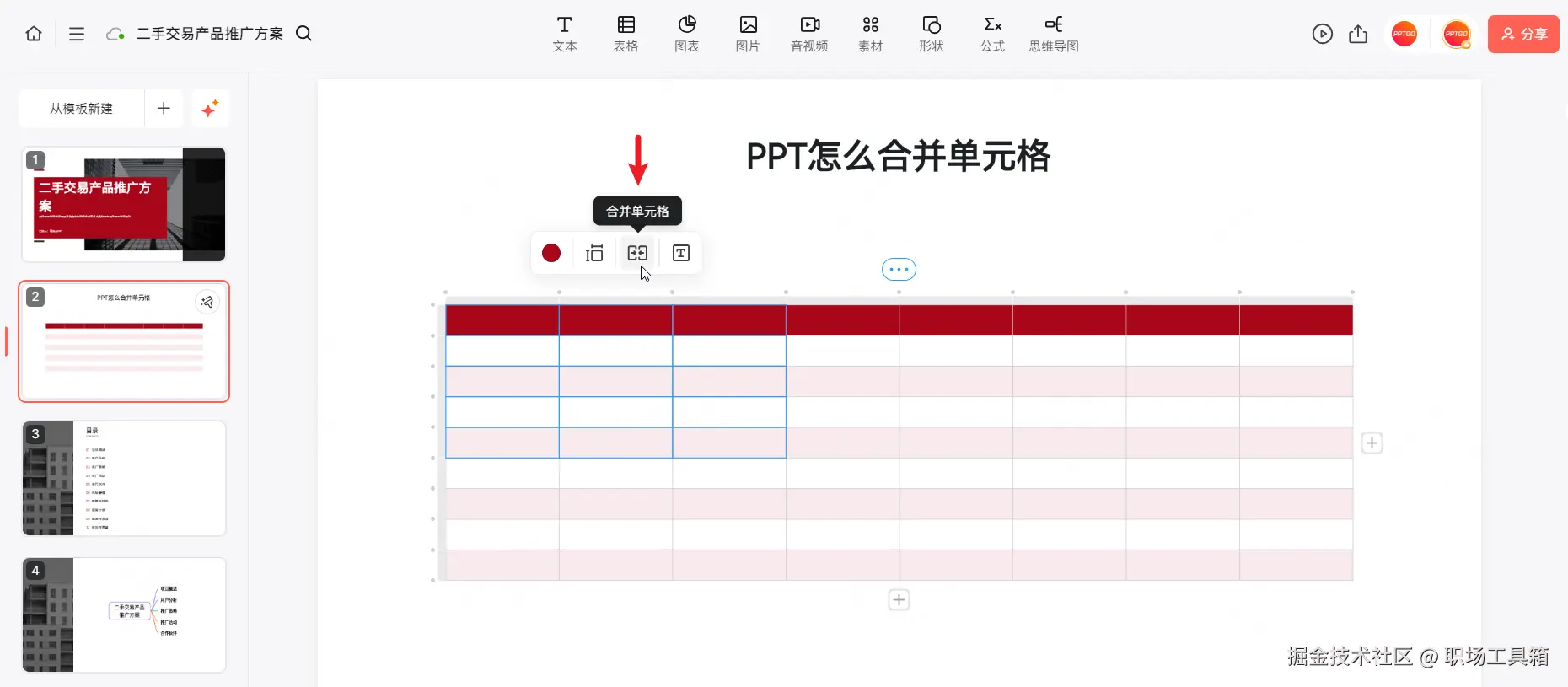 新一代PPT软件怎么合并单元格?