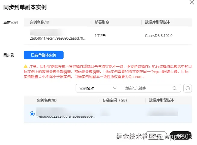 - 执行该操作后被选中的单副本实例上的数据会被全部覆盖,密码也会被覆盖。