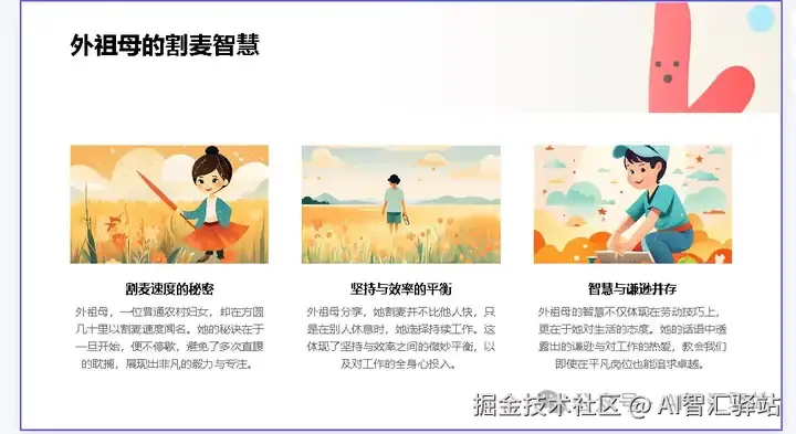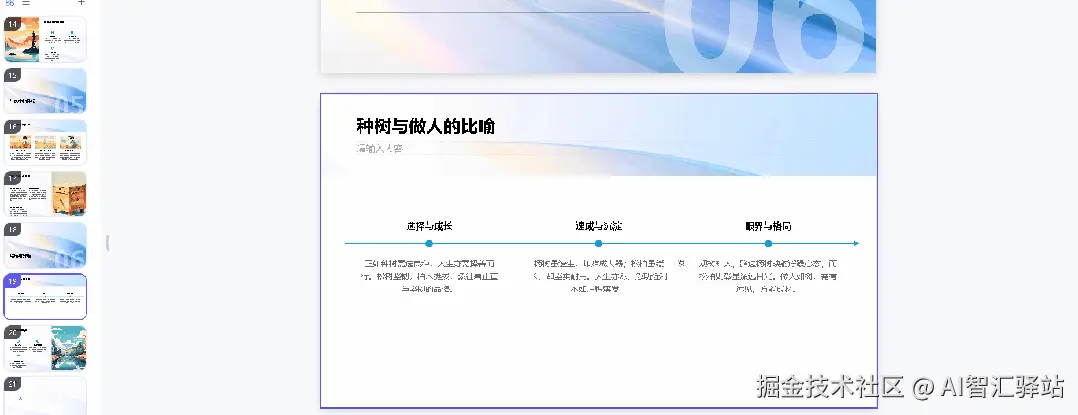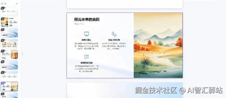 总结一下:PPT的配图,都是用AI生成的,可以自行调整提示词进行生成,这个我很喜欢,毕竟找配图太麻烦了。