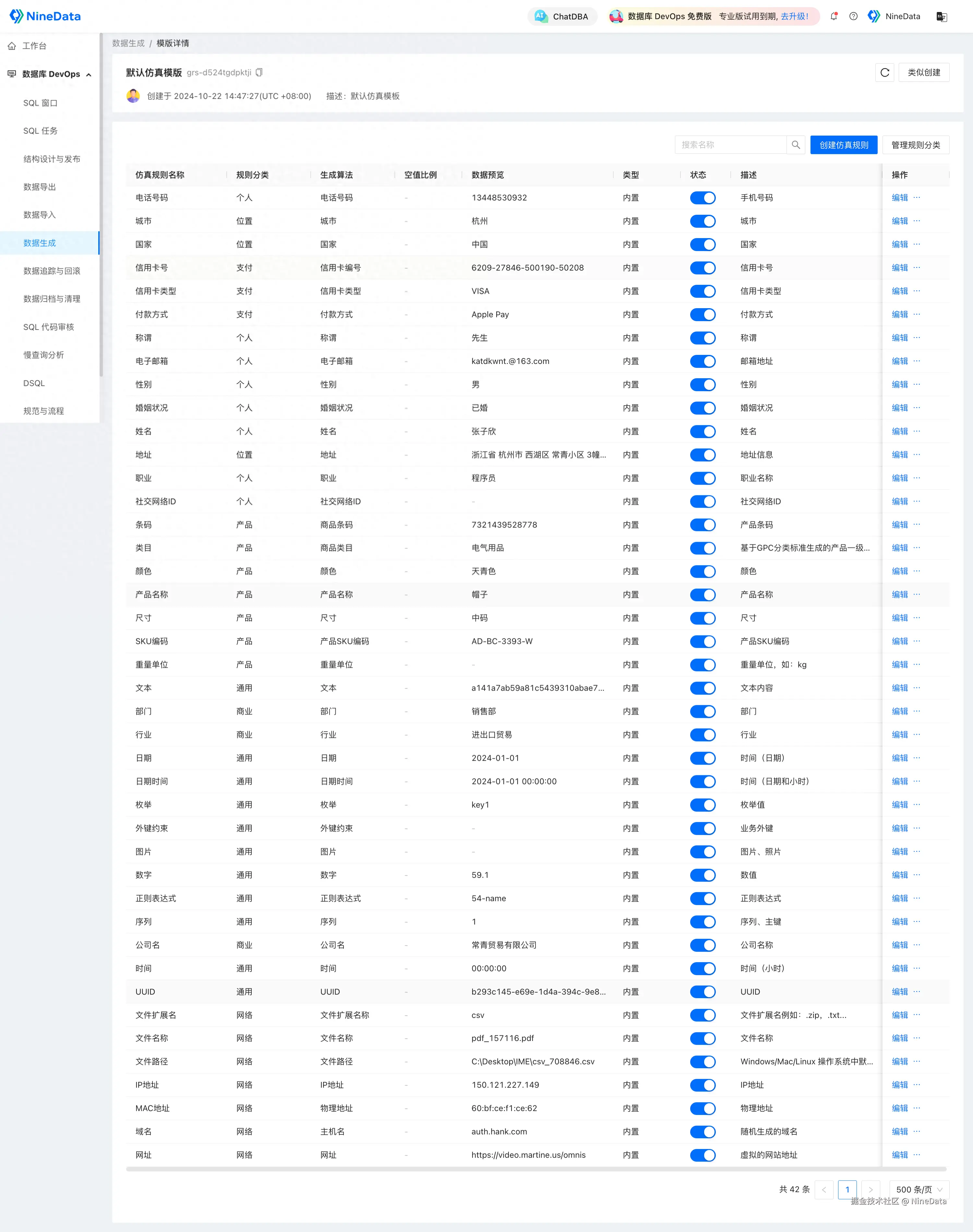 可以看到通过 NineData 数据生成功能生成的测试数据非常符合真实场景,乍一眼根本难辨真假。有了这个法宝,企业能够快速生成大量真实、有意义的测试数据,从而加速开发进程,优化系统测试效果。