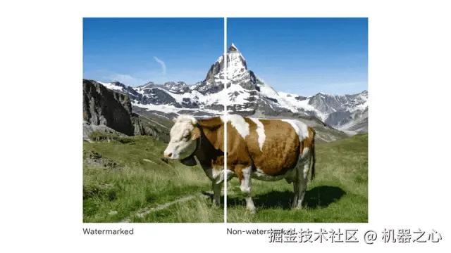 在给图像添加水印时,由于人眼的辨别相近色彩和能力远不及机器 —— 毕竟在机器「看」来,这些不同颜色本质上只是不同的数值。以下动图展示了多张加了水印和未加水印的对比图像。是不是完全看不来水印在哪里?