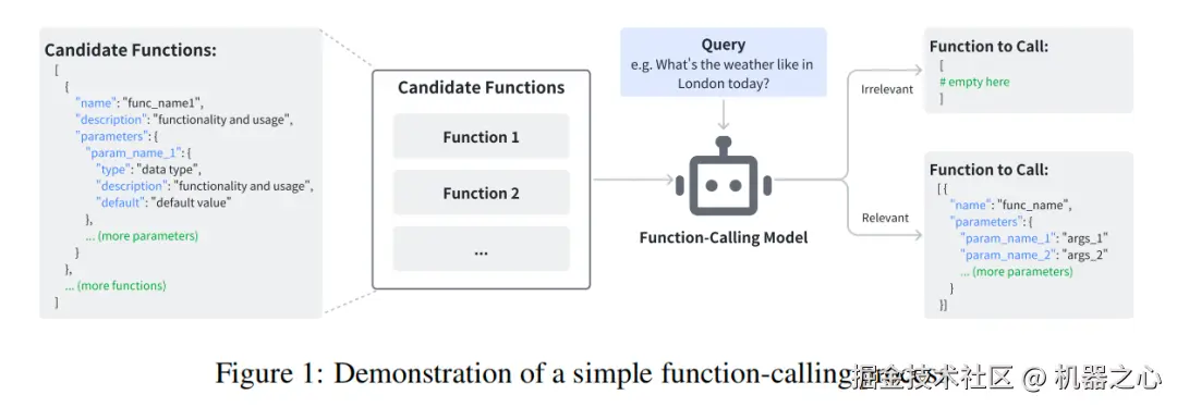 工具调用作为 AI 智能体执行复杂任务所必备的核心能力,要求模型不仅能够识别正确的函数,还要准确填写函数的输入参数;如果给定函数列表无法满足用户的意图,模型也应具备拒绝任务的能力。下图是工具调用模型输入输出的一个样例: