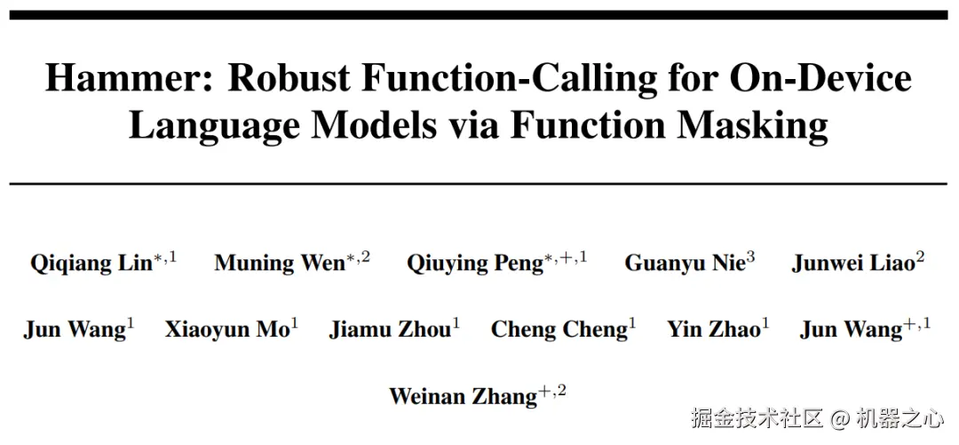 业界已发布的工具调用模型,在特定评测基准上有接近甚至超越闭源 SOTA 模型(比如 GPT-4)的表现,但在其他评测基准上下降明显,难以泛化到新工具和新场景。为应对这一挑战,来自 OPPO 研究院和上海交通大学的研究团队提出函数掩码(Function Masking) 方法,构建了具备强大泛化能力的**轻量化工具调用系列模型:**Hammer,并开源了完整的技术栈,旨在帮助开发者构建个性化的终端智能应用。