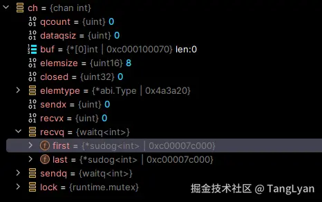 ch <- 3 // 将断点打到这个位置
