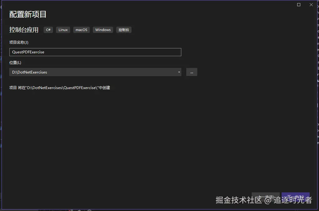 创建一个名为QuestPDFExercise的控制台应用。