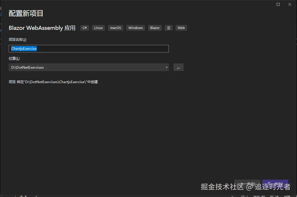 创建名为ChartjsExercise的Blazor WebAssembly应用:
