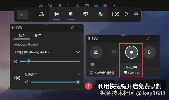 内置于Windows系统的录屏神器,只需简单按下【Win+G】键,便能唤醒其屏幕录制功能。该免费的录屏软件不仅操作简便,还适配游戏录制,可以捕捉游戏中的每一个高光时刻。