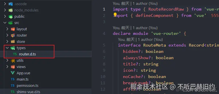 因为是用 typescript 编写的,我们需要加一下声明文件,定义下 remainingRouter 的类型