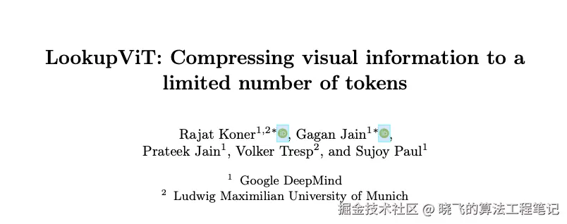 论文: LookupViT: Compressing visual information to a limited number of tokens