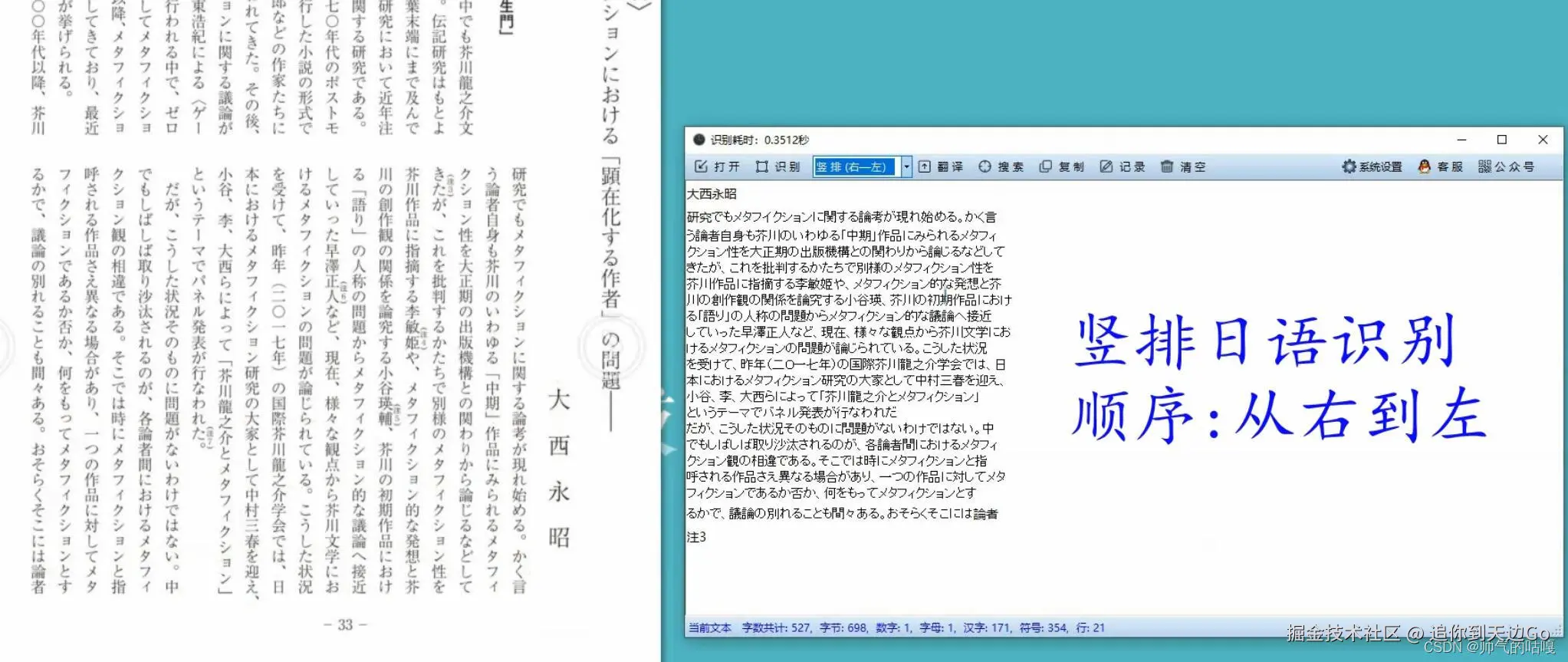 今天我们着重讲下竖排的日语识别,从左到右 和 从右到左,如下图