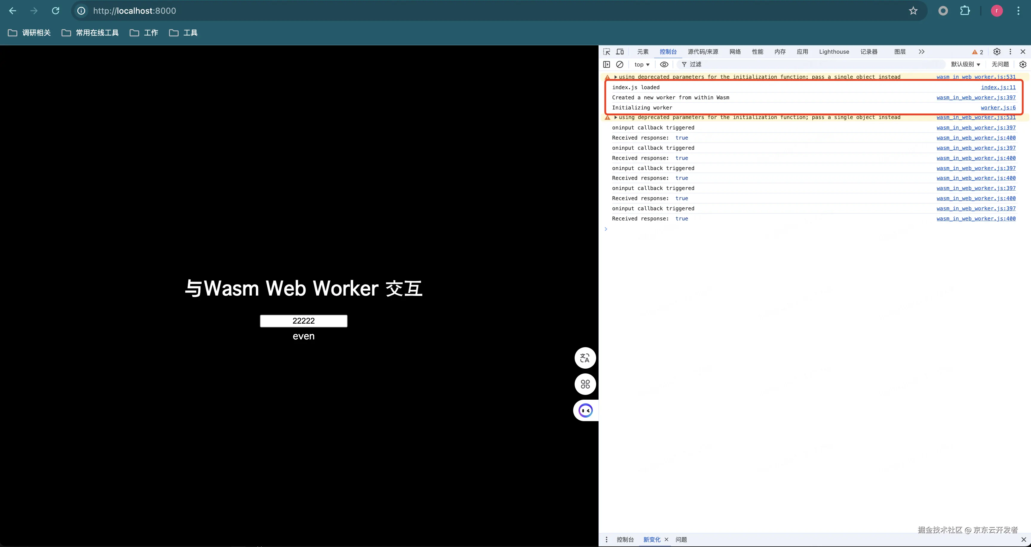 下面这段代码项目是用 Rust + JavaScript 编写的,用于 WebAssembly (Wasm) 项目,它与 Web Workers 和 Web 页面交互。代码的主要功能是判断用户输入的数字是否为偶数,并将结果显示在网页上。