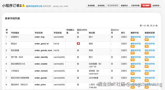 例如,我建了一个小程序订单的表单,并且加了约20个字段。