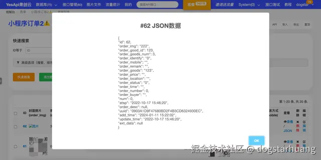 例如,查看单条数据的JSON(不用太关注里面的数据),