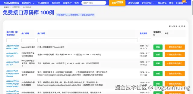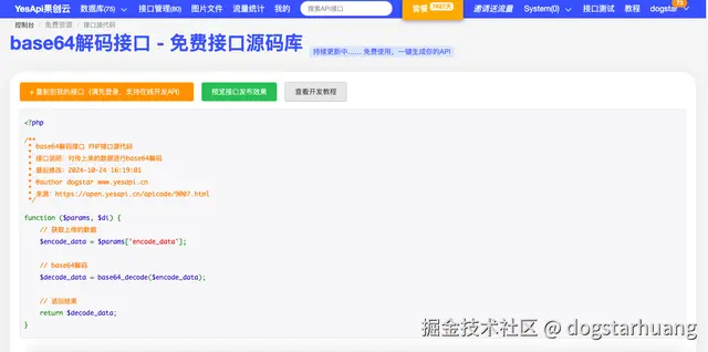 而且,我不会告诉你,连base64_decoce()解码函数,我也是从官网接口源码库中找到使用示例的。大家平时想要什么,可以先到这里找一找。免费接口源码库 100例 :
