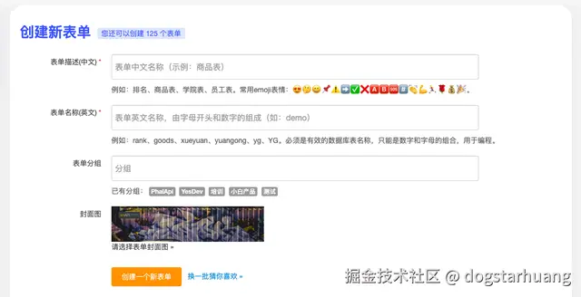 在线创建一个自己的表单,也很简单。主要是看自己在开发什么功能,需要存放什么数据。一开始,我也对表单、数据库、字段,没什么概念。其实也很简单,例如,你看下别人的接口都给你返回哪些数据,例如微信小程序登录后返回的用户信息,