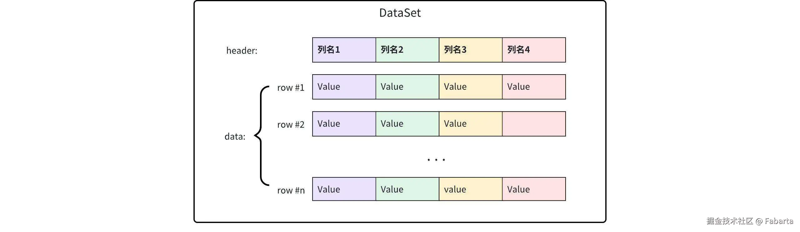 自 v2.1.2 版本之前,ArcNeural 图数据库中间计算结果和查询返回结果都使用基于行存的数据集(DataSet)结构,DataSet 的结构形式如下: