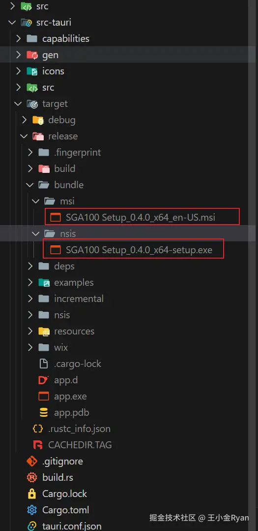 最后打包完成,安装包在 src-tauri\target\release\bundle 路径下。两种格式的安装包都是一样的。