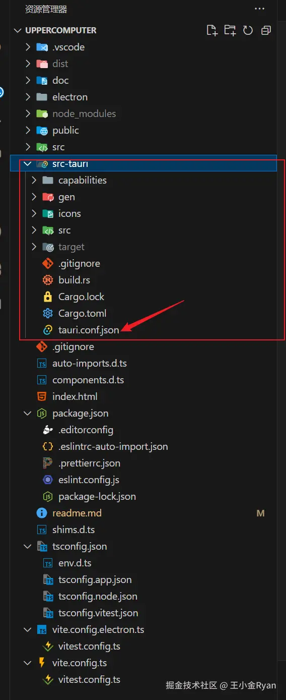 初始化完成后,会自动生成src-tauri的目录,配置文件就在其中。