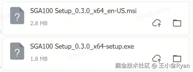 上方两个SGA100 Setup是Tauri打包出来的。下面UpperWeb Setup是Electron打包出来的。(名称不一样是因为后来改了名字,但是都是同一个Vue项目打包出来的)。