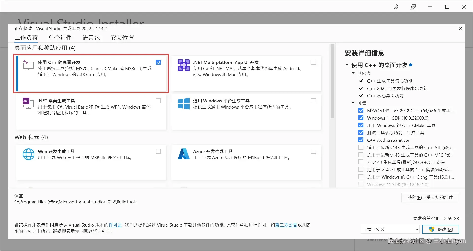 - 下载 Microsoft C++ 构建工具 安装程序并打开它以开始安装。