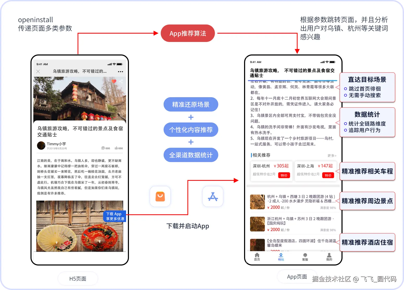 在线上App社区的KOC分享效果分析上,车企对自身社区孵化的UGC内容页面做了多类自定义参数标签,当用户在老带新传播的过程中分享任意页面给潜在车主后,根据openinstall传参识别:该渠道用户的下载动因应该判断为“需要了解该车型信息”的用户,在App启动后会率先通过深度链接将用户跳转至该车型页面,同时把渠道特征参数提供给推荐算法,让算法将App中有关此车型的车友帖子、配置参数等信息精准推荐给用户,帮助用户在信息多而繁杂的车企App中精准触达心仪车型,或者直接跳转该车页面。
