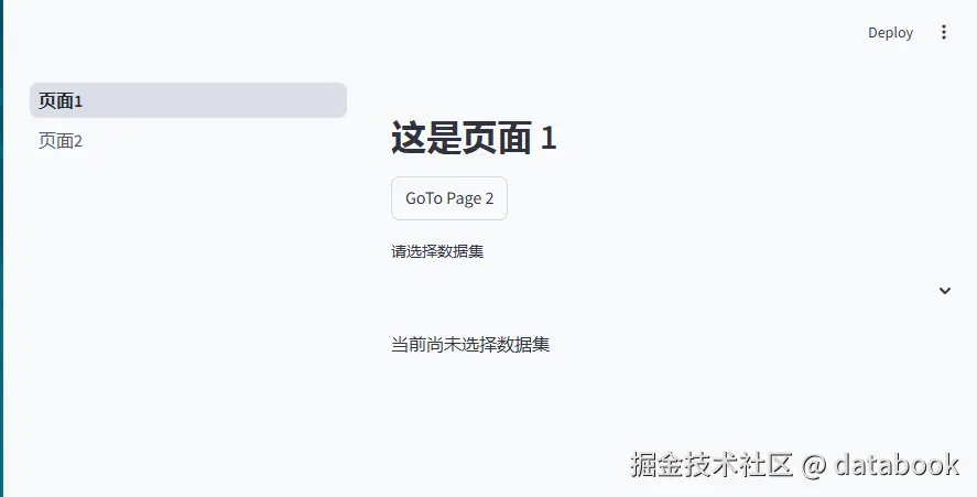 page1.py中将选择数据集名称保存到Session State中。