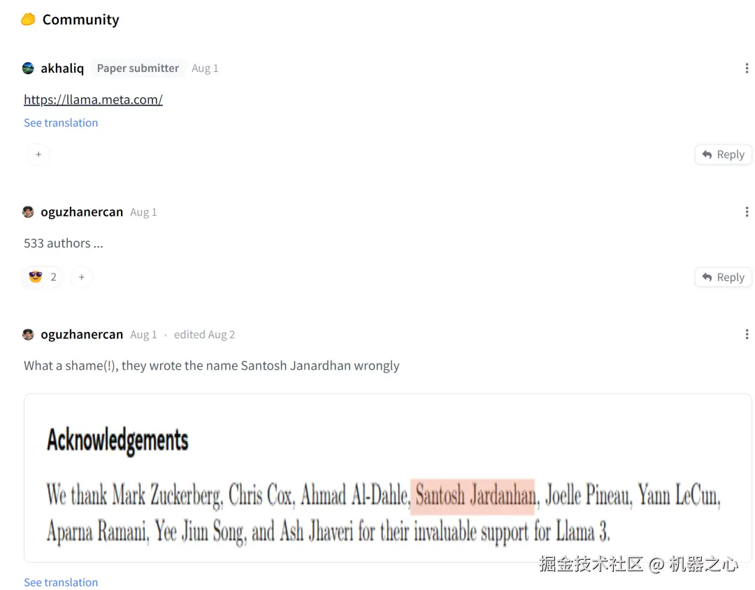 二者打通之后有多方便呢?以直达「Hugging Face 论文」为例,在找到这篇论文后,点击「View on Hugging Face」,你就直接来到了 Hugging Face 的论文评论区,可以和同行们实时交流。