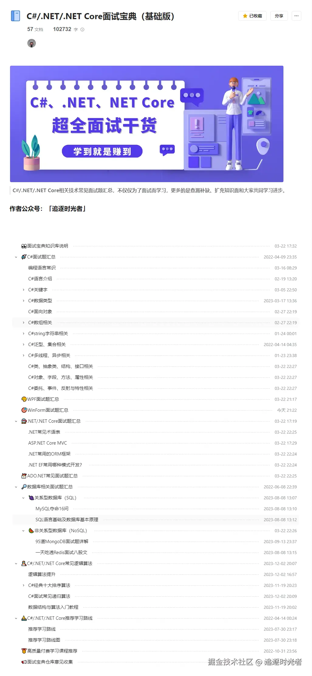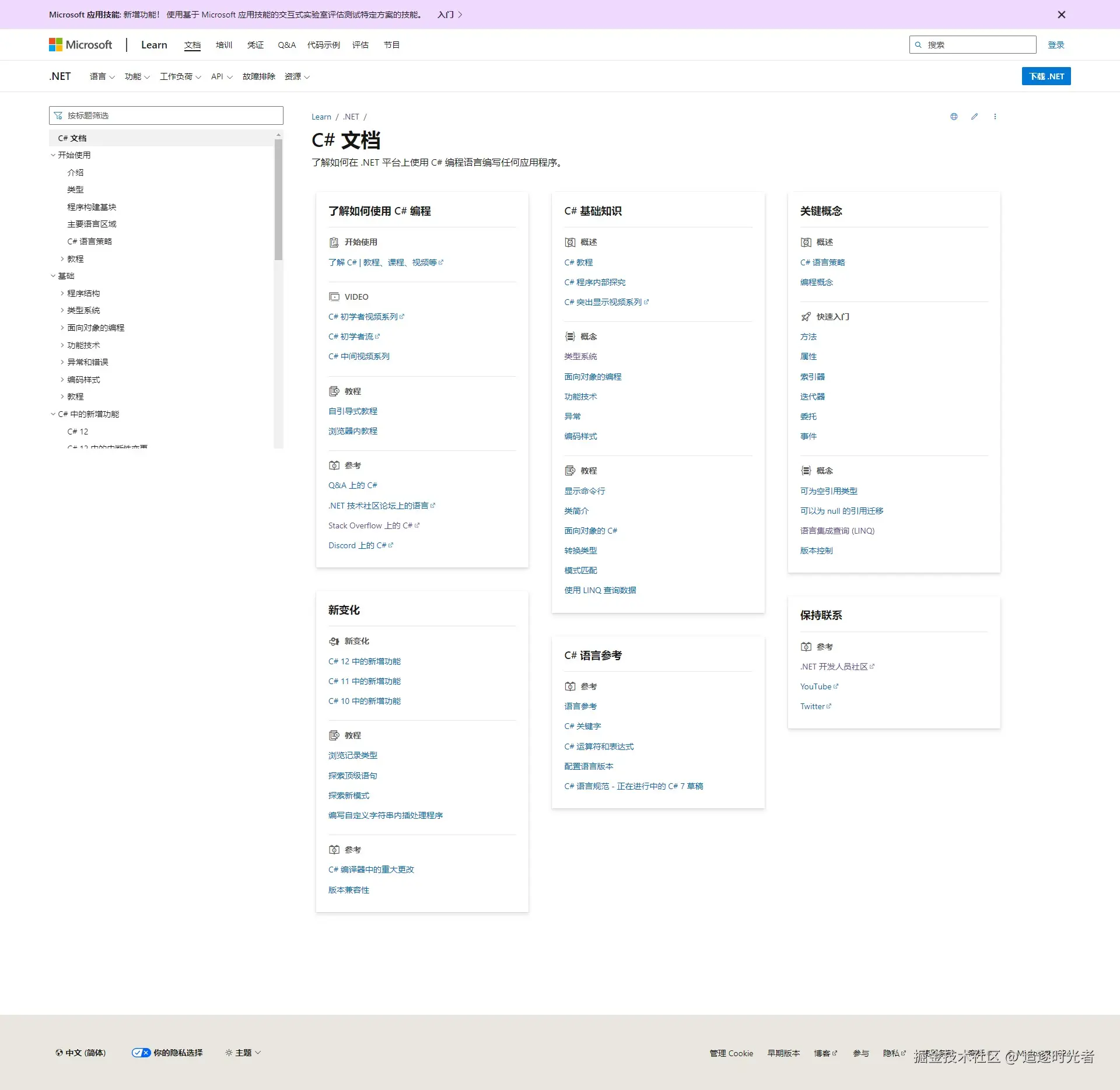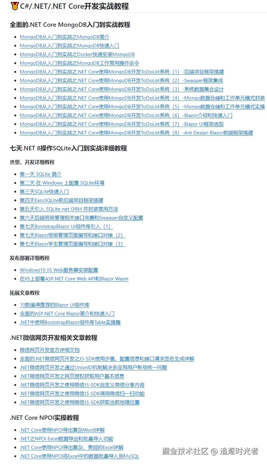 对于C#/.NET的学习,微软官方文档是一个非常好的学习资料。这些文档提供了详细的说明和示例代码,涵盖了C#/.NET的各个方面。按照文档的目录逐步学习,可以让你循序渐进地掌握语言和框架的各个语法和概念。