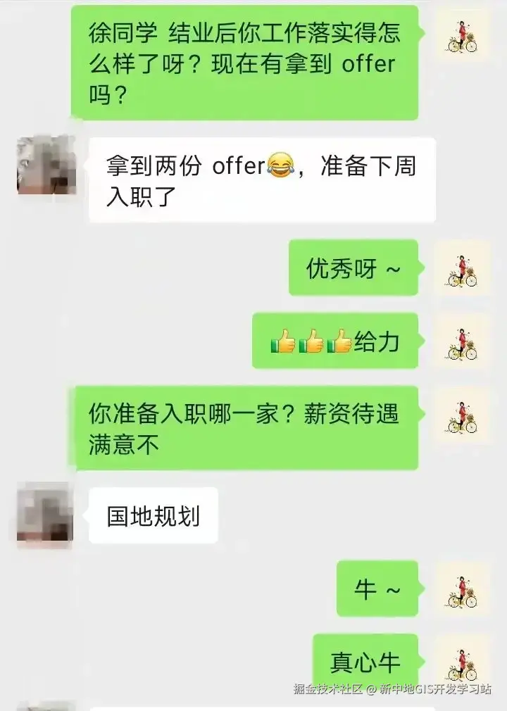 学完新中地的GIS开发特训营,面试三家企业,拿到两家offer,刚结业就成功拿到国企的offer。