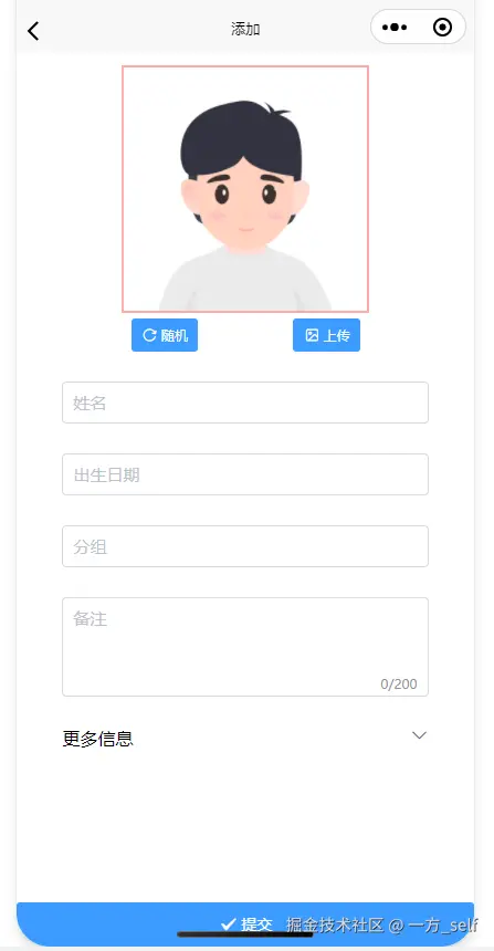 上面依次是头像、姓名、出生日期、分组、备注、更多信息。
