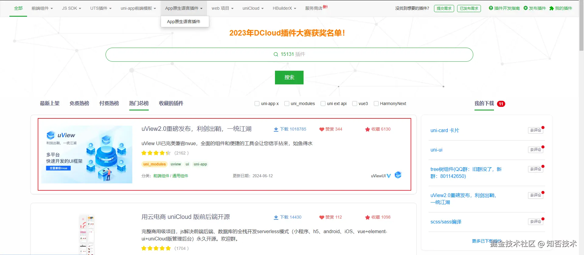 uniapp 官方插件市场推荐的前端组件库是 uView
