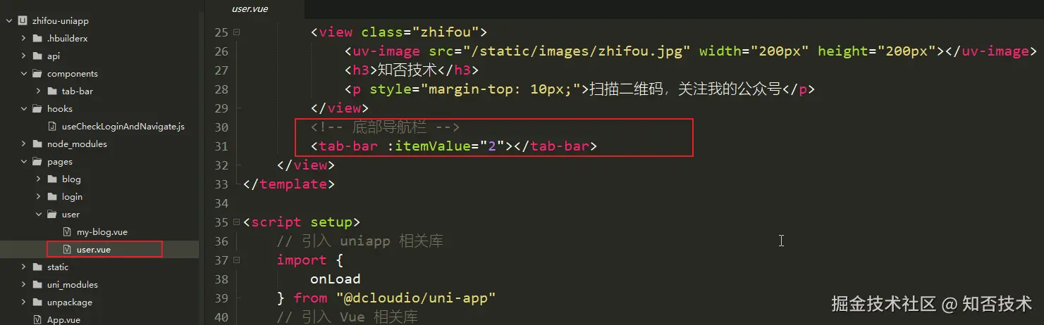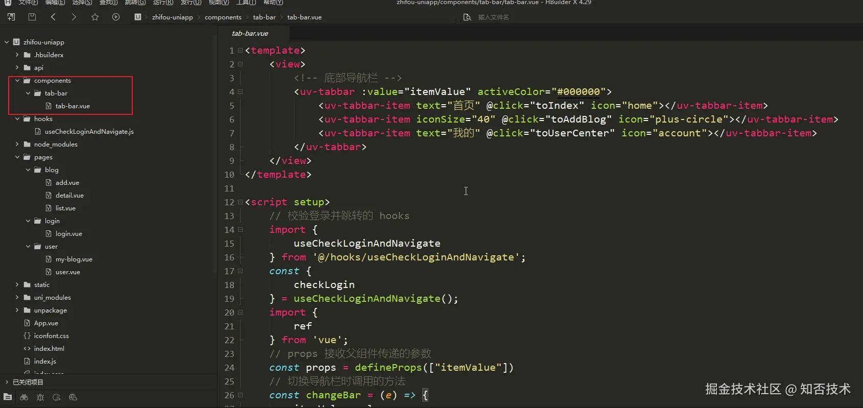 在 components 文件下面新建同名目录的 tab-bar.vue 文件