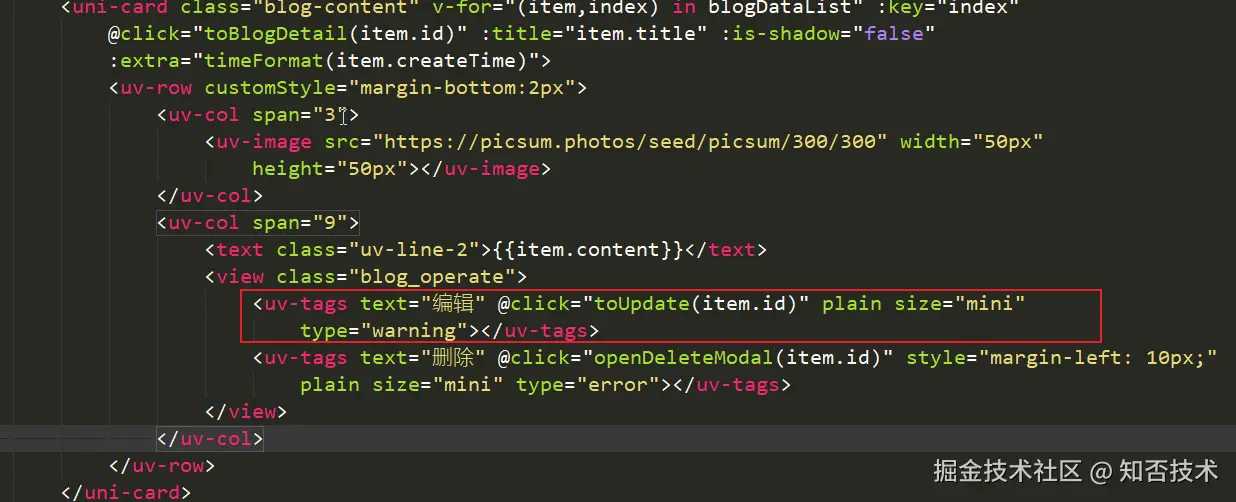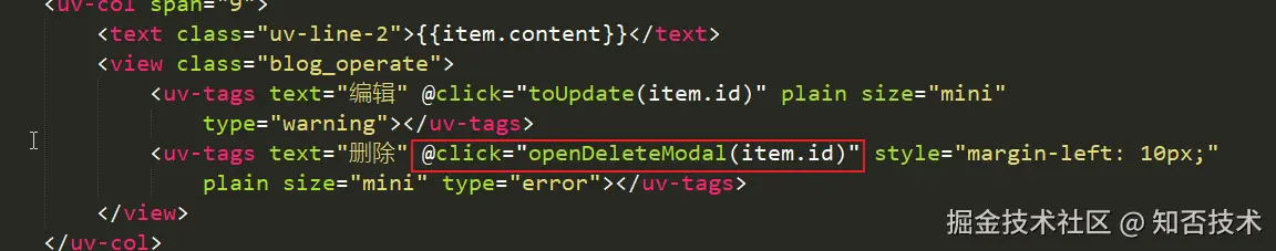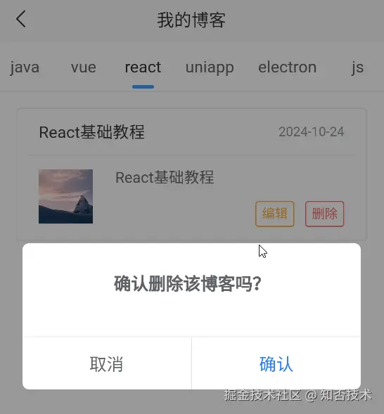 删除博客用到了 uv-ui 的 uv-modal 组件,@confirm 绑定确认事件,@cancel 绑定取消事件