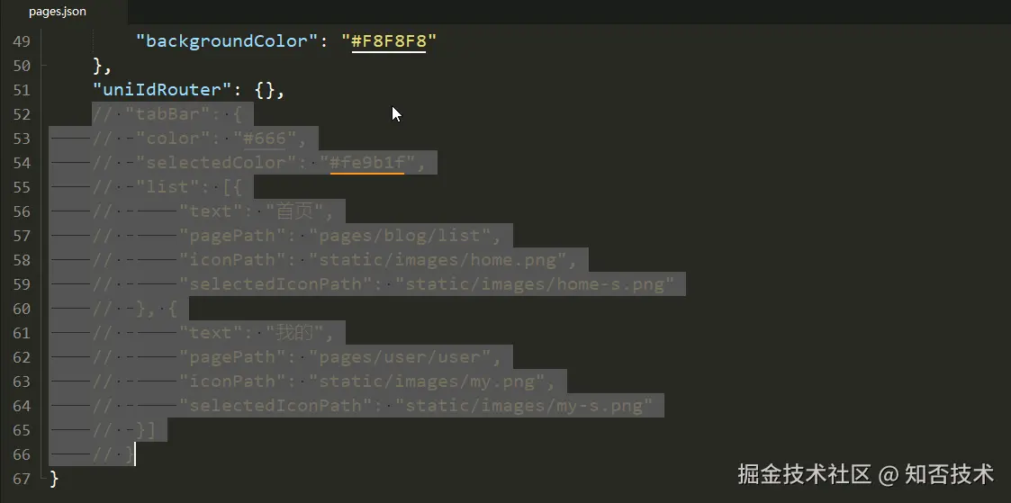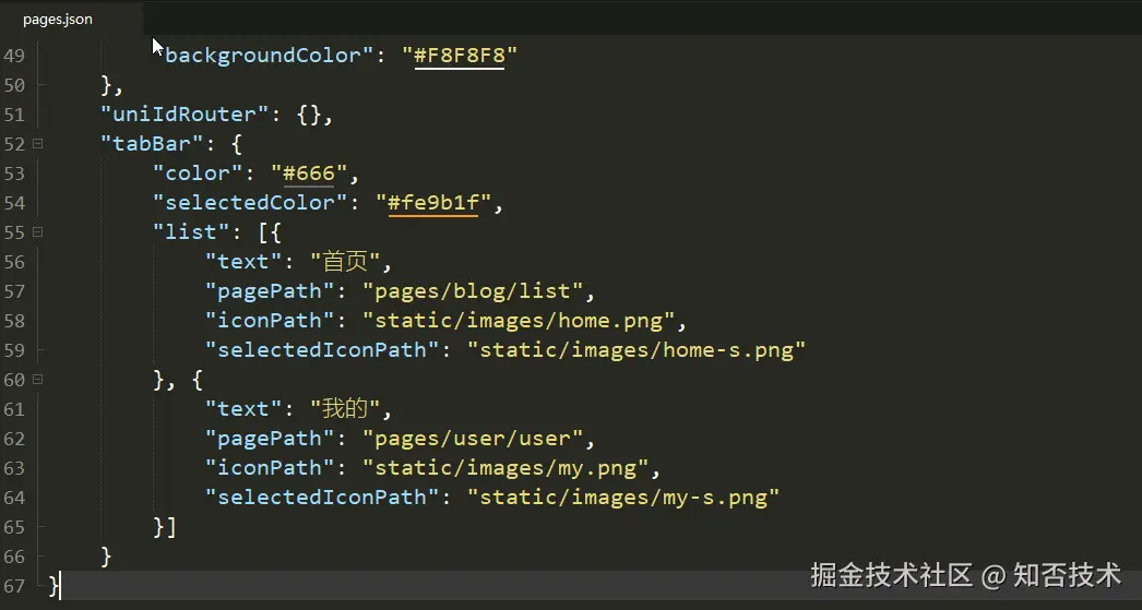 前面基础篇讲过,我们需要在 pages.json 的 tabBar 上面配置 app 的底部导航栏。