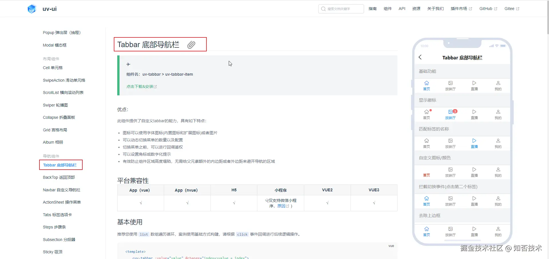 底部导航栏我们用到了 uv-ui 的 Tabbar 组件
