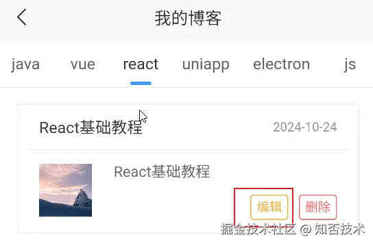 编辑博客和新增博客共用 add.vue 页面,只不过是编辑的时候根据 id 先获取博客详情数据,头部导航栏的标题改为“编辑博客”。
