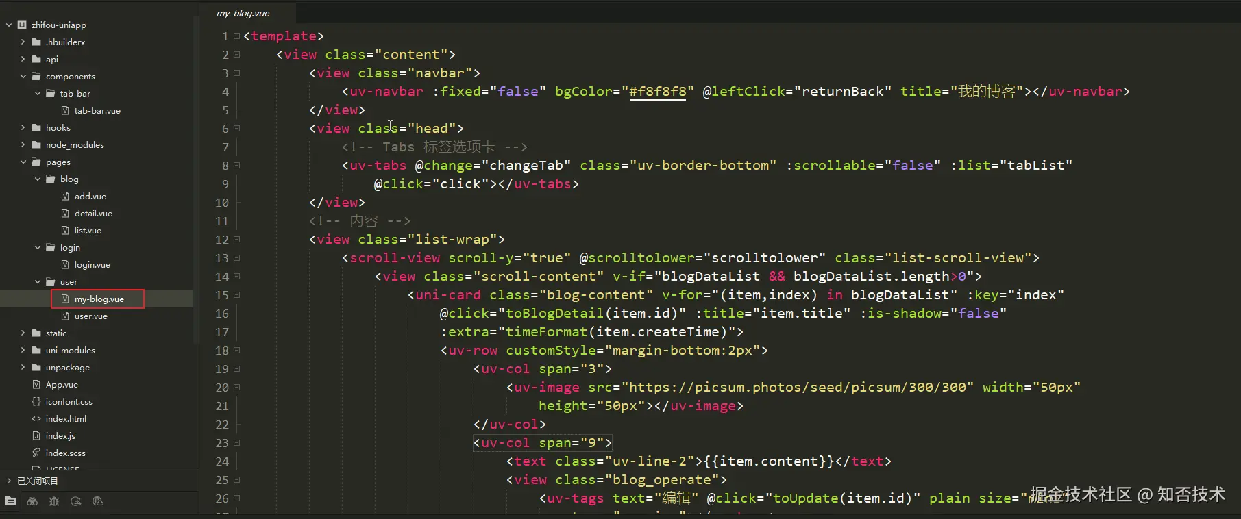 当然实际项目中一般是后台从缓存中获取用户信息,这里只是告诉大家怎么获取“我发布的博客”。