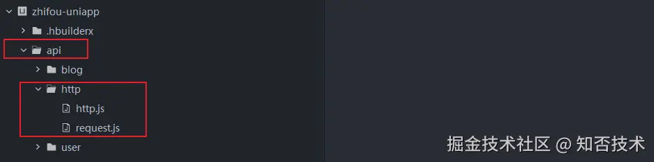 新建 api 文件夹,在 api 下面分别新建 request.js 和 http.js 文件。