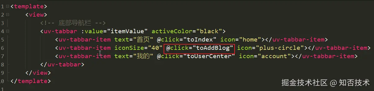 <uv-tabbar-item iconSize="40" @click="toAddBlog" icon="plus-circle"></uv-tabbar-item>