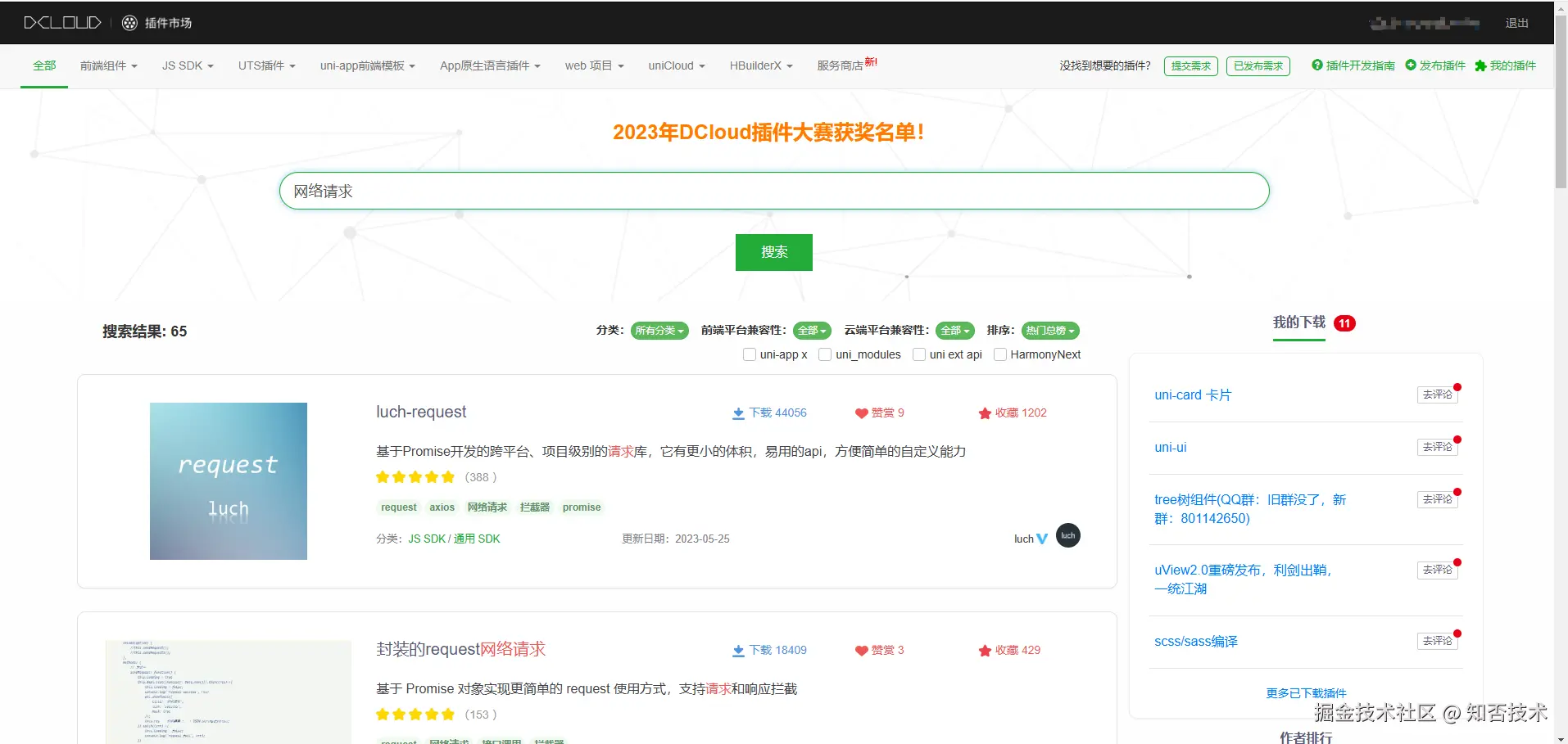 1.去 uniapp 插件市场安装第三方的 uniapp 网络请求库,注意有些是收费的