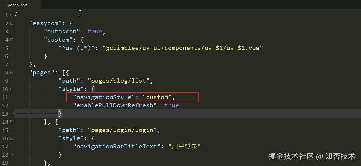 注:如果自定义底部导航栏,需要删掉 pages.json 里面 tabBar 的配置,否则无效。