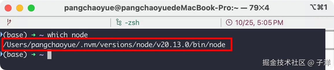 我们需要在 Git 插件中配置一下 Node 的环境变量,我们先通过 which node 找一下当前 node 的位置